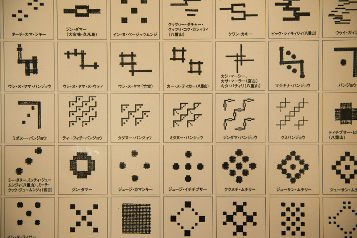 八重山傳統的手織品「花織綿狹」,是很久以前女性會將「永誌不渝」的訊息編織在和服的帶子上,再贈與給心愛的戀人,交織而成的五個與四個絣花紋,感覺非常浪漫。